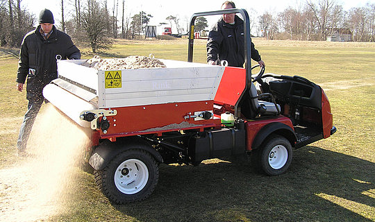 Eine Arbeitsbreite von 1,80 und ein Ladevolumen von 1,0m3 sorgen für spurdeckende Arbeit.