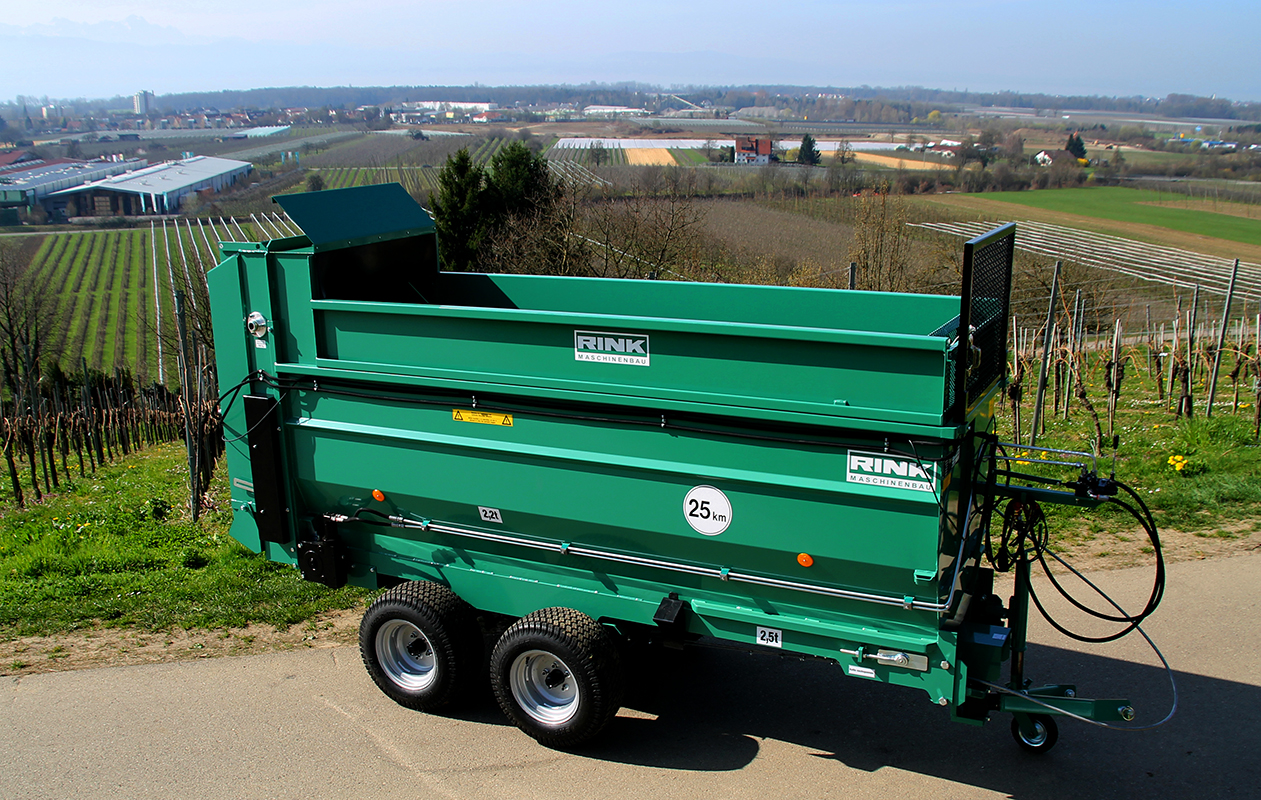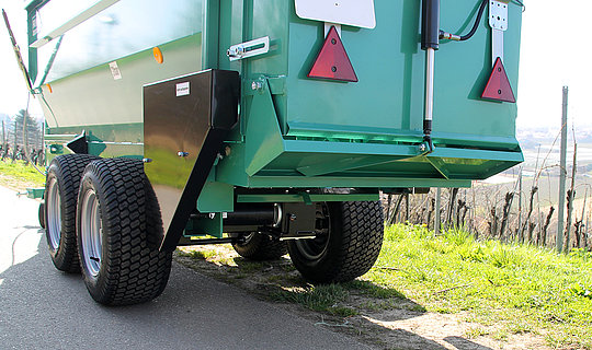 Der RINK Schmalspurstreuer WBS 15L verfügt über eine Ladekapazität von 2,20m3 und einer Streubreite von 0,90m. Dieses Modell ist mit einer Tandemachse ausgestattet. Das Streuwerk des Schmalspurstreuers wird über die Zapfwelle des Zugfahrzeuges angetrieben. Der Kratzboden kann wahlweise mechanisch oder hydraulisch, mit oder ohne Schubwand, angetrieben werden. Streudichte bzw. Streumenge können durch Fahrgeschwindigkeit, Zapfwellendrehzahl und Verstellen der Kratzbodengeschwindigkeit bestimmt werden. Durch verschiedenster Ausstattungsmöglichkeiten haben wir für jede Anforderung die passende Konfiguration.