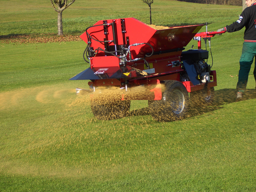 Der Tellerstreuer RINK DS 550 verfügt über ein Ladevolumen von 0,5m3 und dient zum feinen aber auch kräftigen Besanden auf Golfplätzen. Dieses Modell gibt es als gezogene Variante RINK DS 550PB als Aufsetzbesander RINK DS 550TM sowie als selbstfahrenden Topdresser RINK DS 550SP. Der Selbstfahrer wird über einen 18PS Motor angetrieben. Das Bedienelement sorgt für einfache Handhabung.