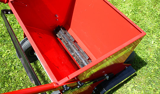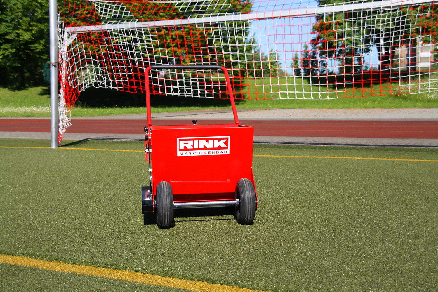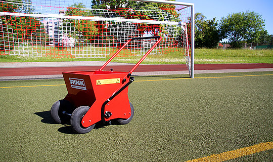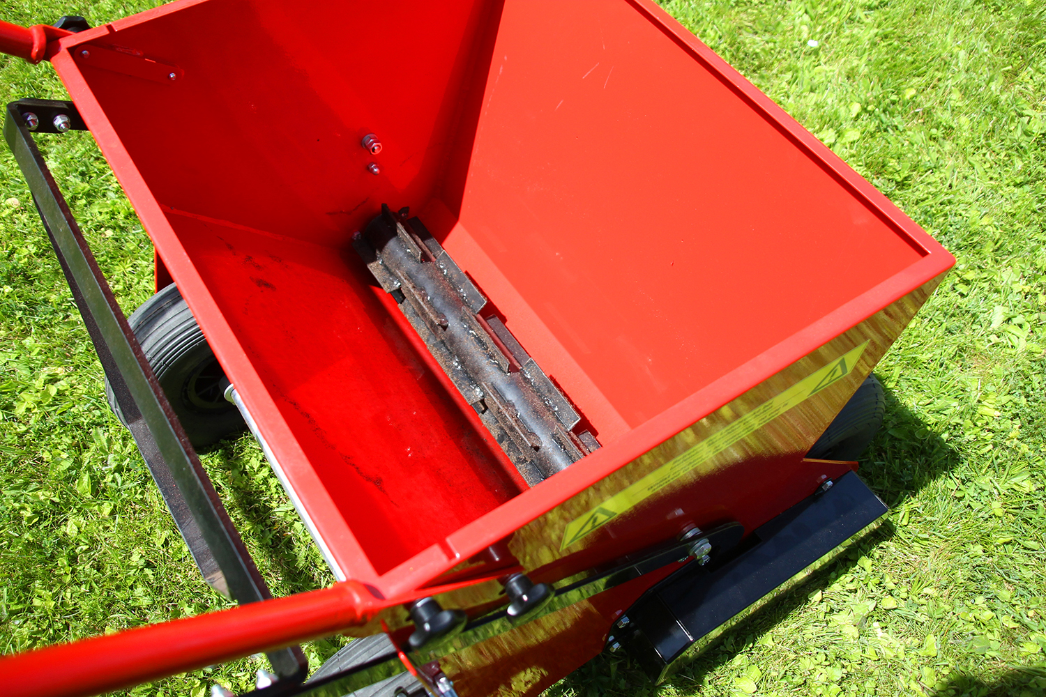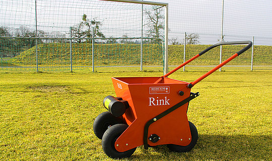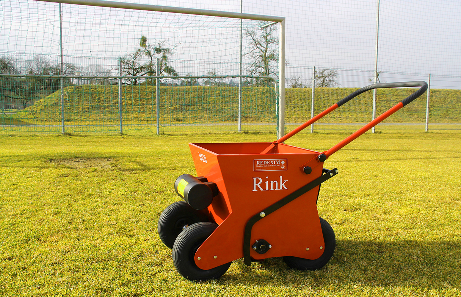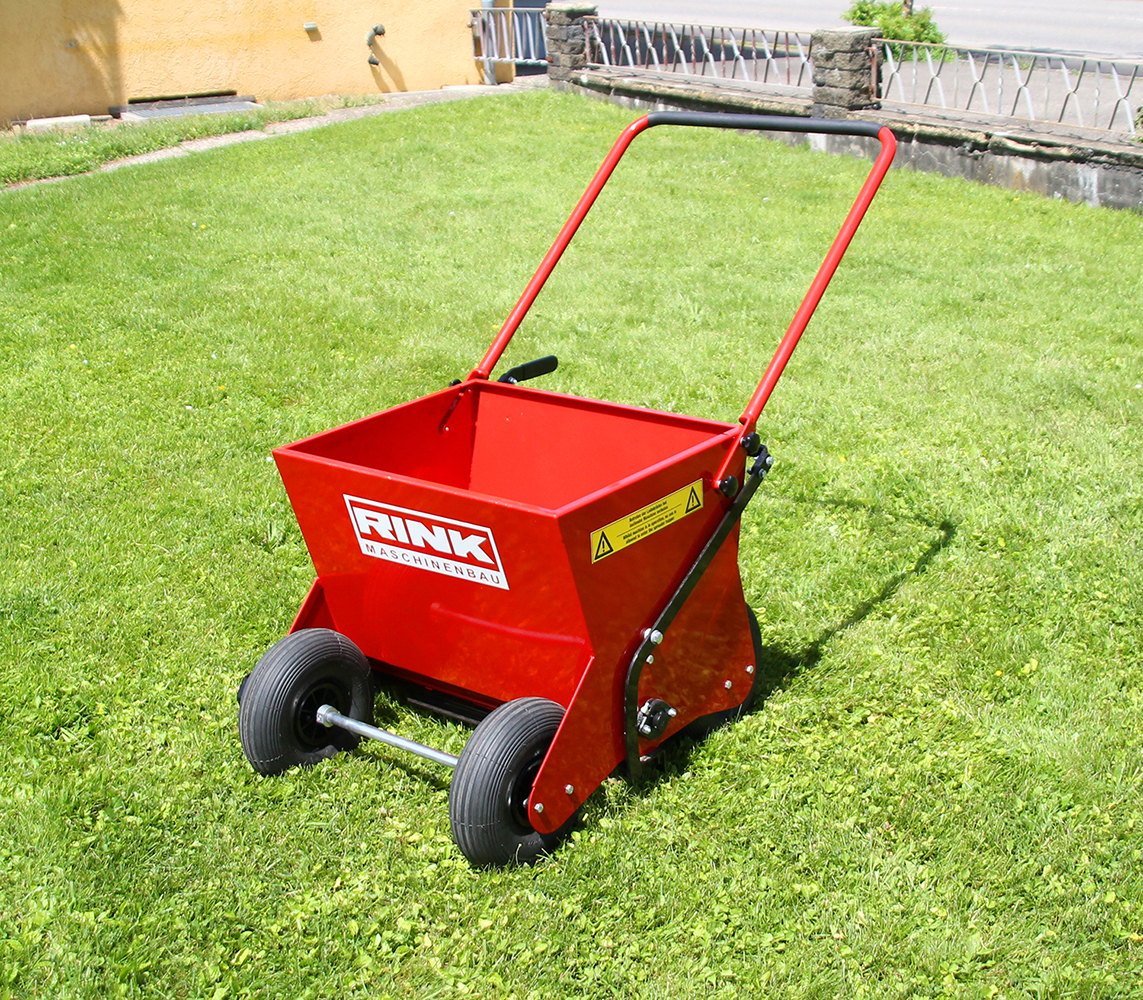Der RINK Handstreuer H 620 dient zum Streuen von feinkörnigem, losem Streugut wie Sand, Riesel, Granulat oder ähnlichem. Die Streueinrichtung des RINK Handstreuer H 620 wird über eine Kette angetrieben. Die Streudicke bzw. Streumenge wird über einen mechanischen Schieber eingestellt. Das Streugut kann somit genau dosiert werden.